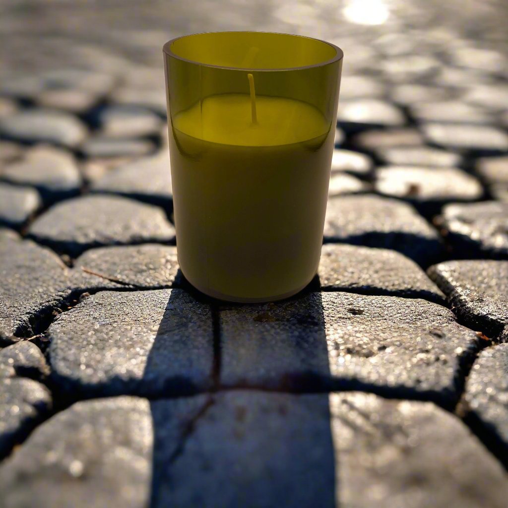 These customizable wine bottle candles are crafted from green wine bottles. The container has straight sides, measures 4 1/2” tall with a diameter of 2 7/8” and holds 8 oz of soy wax in the scent of your choosing and a cotton wick. Whether for weddings, corporate events or intimate celebrations, these candles will become cherished mementos of your unforgettable event. Email us directly at soyenjoyablecandles@comcast.net to discuss design options for the label. Or fill out the Custom order form our our website soyenjoyablecandles.com *****Please note that the price of the candle excludes design fees and label costs******