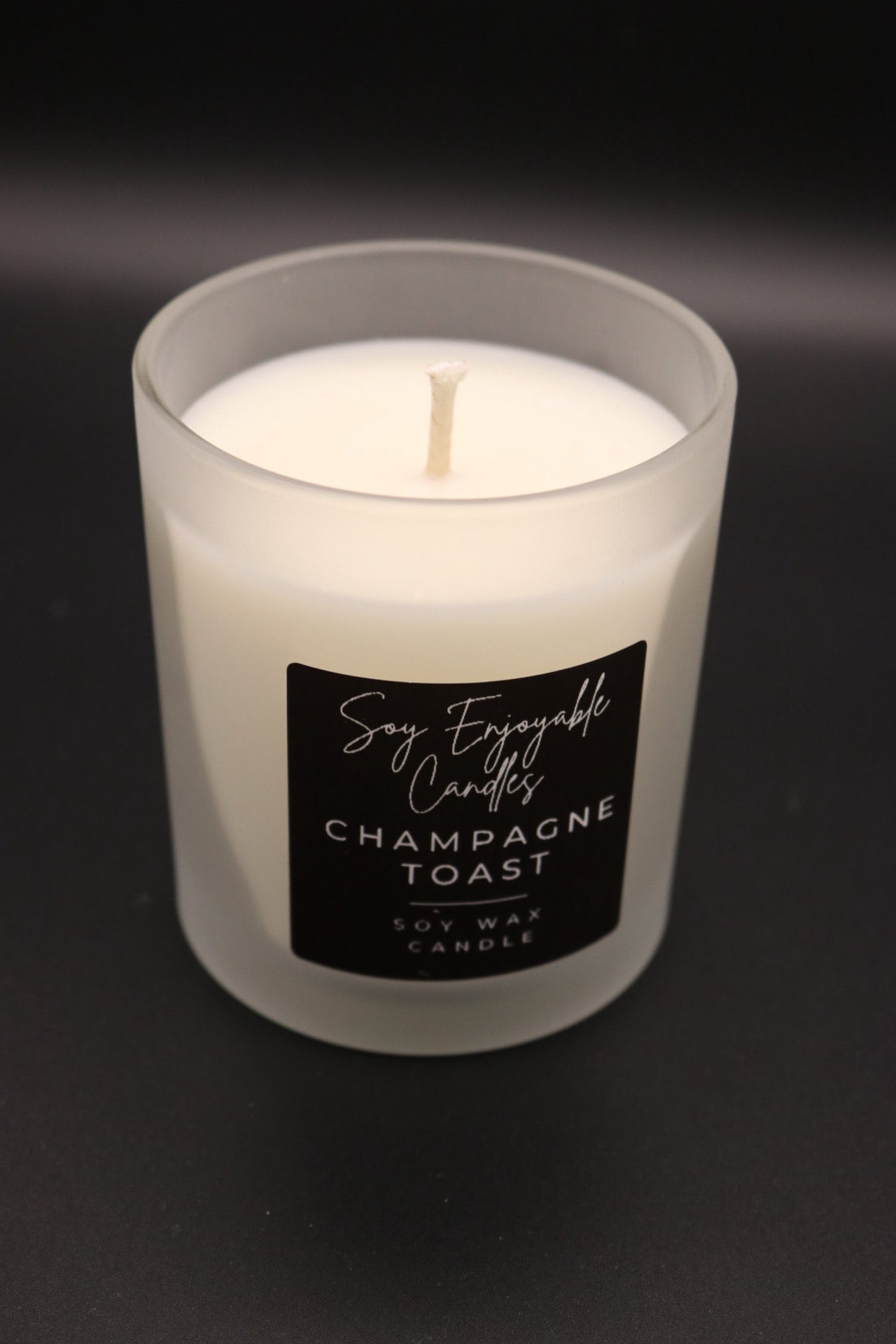 This vessel is timeless with its straight sided profile and frosted finish. The frosted finish is appealing to a variety of styles from modern to rustic. It features a matte black lid and a scent label on the front of the jar. It holds a generous 8 ounces of soy wax and a cotton wick. Jars measure 3.5” tall and 3 1/8th in diameter.
